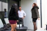 Door opens and sexy neighbor Christina Santes struts in wearing sheer lingerie and stockings, huge natural tits spilling out. Horny grandpa Richard Vagner and petite Fiona Sweetyx can’t wait. Fiona drops to her knees, sucking his thick cock while Christina rubs her hairy pussy with a buzzing toy. Soon Richard’s tongue is buried in Christina’s juicy folds, then he bends her over and pounds that curvy ass doggy-style, big boobs swinging. Fiona rides Christina’s face, moaning. They swap: Richard slams Fiona’s tight hole while Christina sits on his face. Final deep thrusts into Christina’s hairy pussy and he explodes, pumping a thick hot creampie that drips down her stockings.