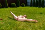 In "Nicole is all giggles and bubbles" our sweetheart is having fun outside, splashing around, making bubbles, and teasing her wet pussy. She laughs and moves on the grass, rubbing herself and playing with her tits. Her flexible body bends and stretches as she moans, letting herself come while having so much fun! Sunny fun turns into naughty solo time, and every touch is hot and playful.